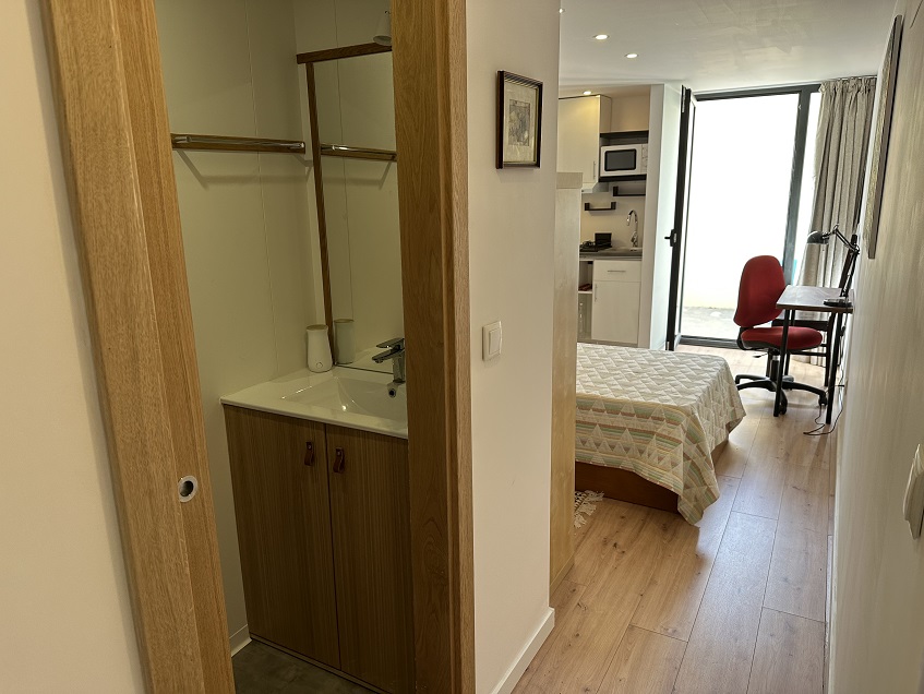 Apartamento T0 para estudantes no polo universitário. Equipado com cozinha, WC e um logradouro